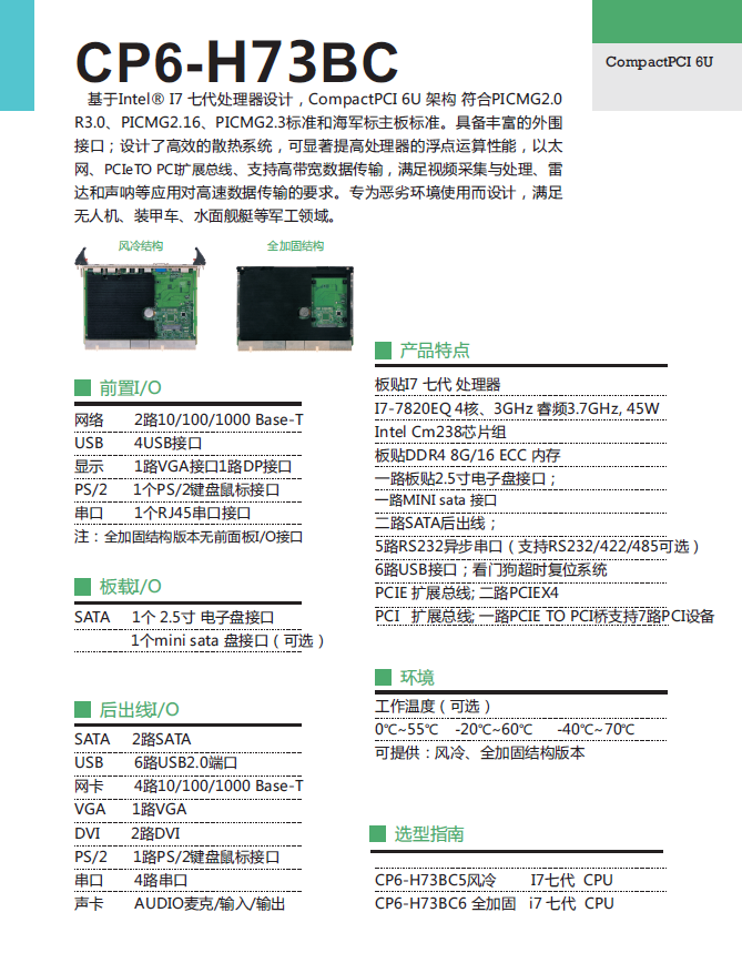 基于Intel? I7 七代處理器設計,CompactPCI 6U 架構 符合PICMG2.0