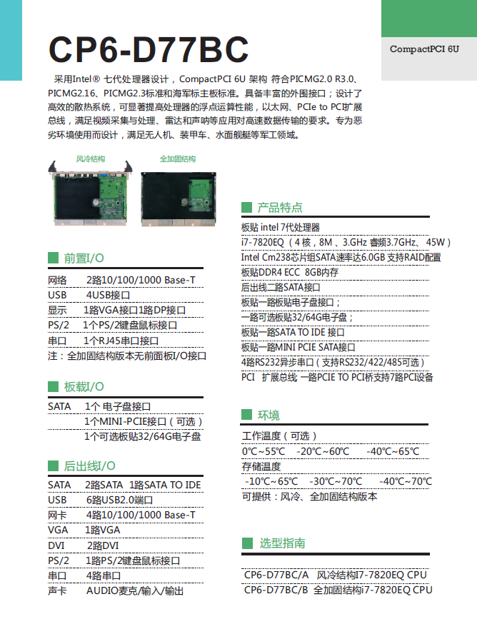 基于采用Intel? 七代處理器設(shè)計(jì)理器設(shè)計(jì),CompactPCI 6U 架構(gòu) 符合PICMG2.0