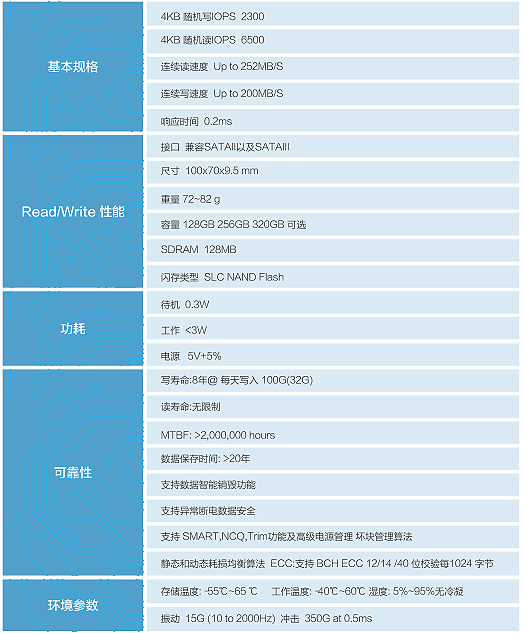 ●連續(xù)讀250MB/S,連續(xù)寫220MB/S平均存取時(shí)間0.1ms